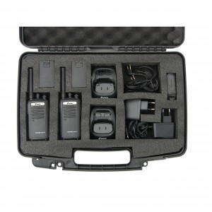 : Accessoires inclus | 2 Emetteurs-récepteurs portatifs PMR 446 , 2 Mini micros , 2 Casques VOX , 2 Dragonnes , 2 Clips de ceinture amovibles , 2 Housses de protection cuir , 2 Packs Accus , 2 Chargeurs muraux , 1 Manuel d’utilisation |